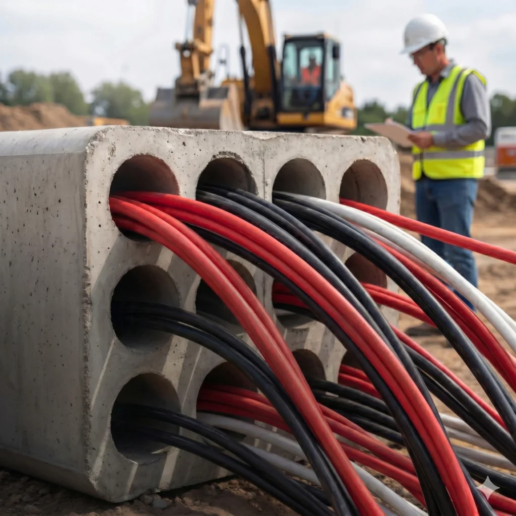 - [Teoría – 40 min]: Redes Enterradas y Bancos de Ductos: Tipos de zanjas, disposición de ductos de PVC/Halfree, uso de concreto y cámaras de inspección.
